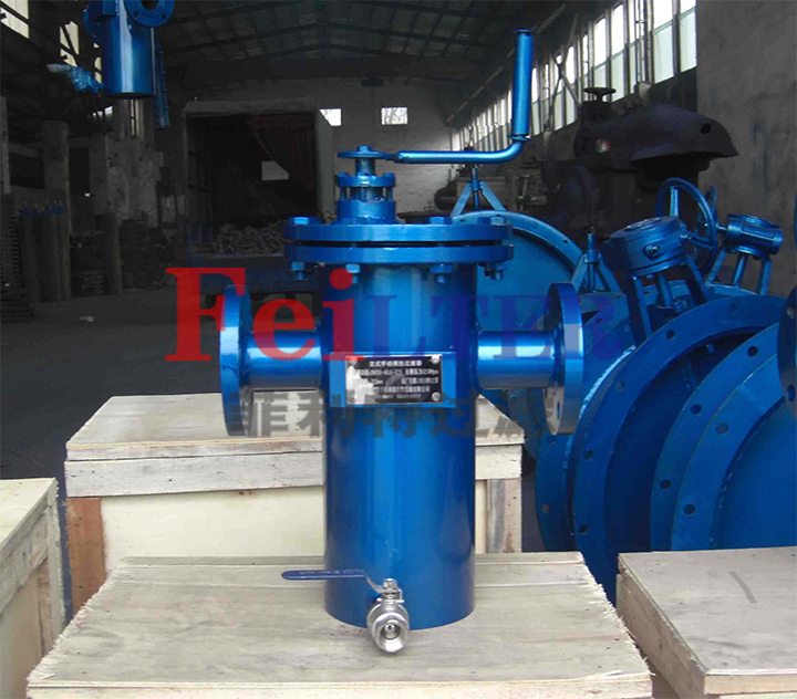 手搖式的過濾器構造為由骨質豬鬃毛刷(與尼龍刷比強度更高和更耐高溫、耐腐蝕及耐老化的特性)及不銹鋼部件組成,該部件穿過過濾器蓋,刷式裝置安裝在不銹鋼濾網(wǎng)內部,過濾器蓋外裝以簡便的手柄,只需輕輕轉動手柄,既能從濾網(wǎng)上刷除微粗雜質并通過污口排出,刷洗過程中水流不中斷,不必停機和拆卸過濾器清洗濾網(wǎng),外殼為優(yōu)質碳鋼簡體。